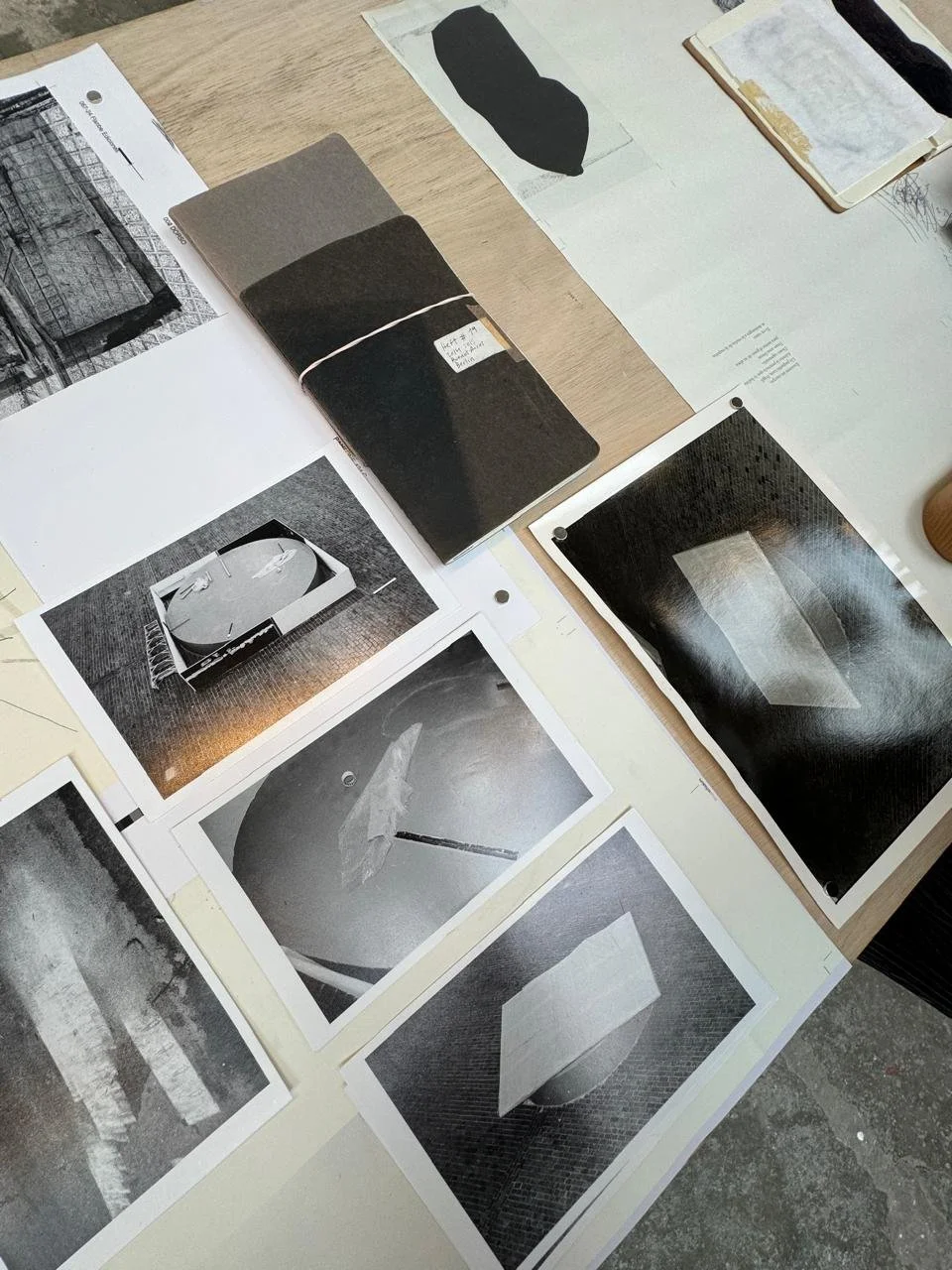 Tener un cuerpo- To have a body, Jimena Passadore Installation November 2024, Printing Process, B&W Photography & Drawings on table 80x243 cm Lerma, Buenos Aires, Argentina. Curated by. Delfina Rabán Ph. Sara Escalante